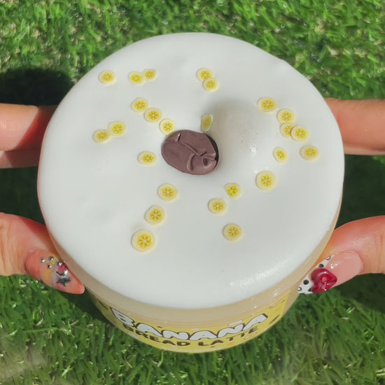 Banana Bread Latte slime offers a cozy experience, with a soft clay "cream top" that invites calming sensory play. Its warm scent, combining light espresso, brown sugar, ripe bananas, and cinnamon, reminds you of yummy fresh baked banana bread. Perfect for squishing, relaxing and unwinding.