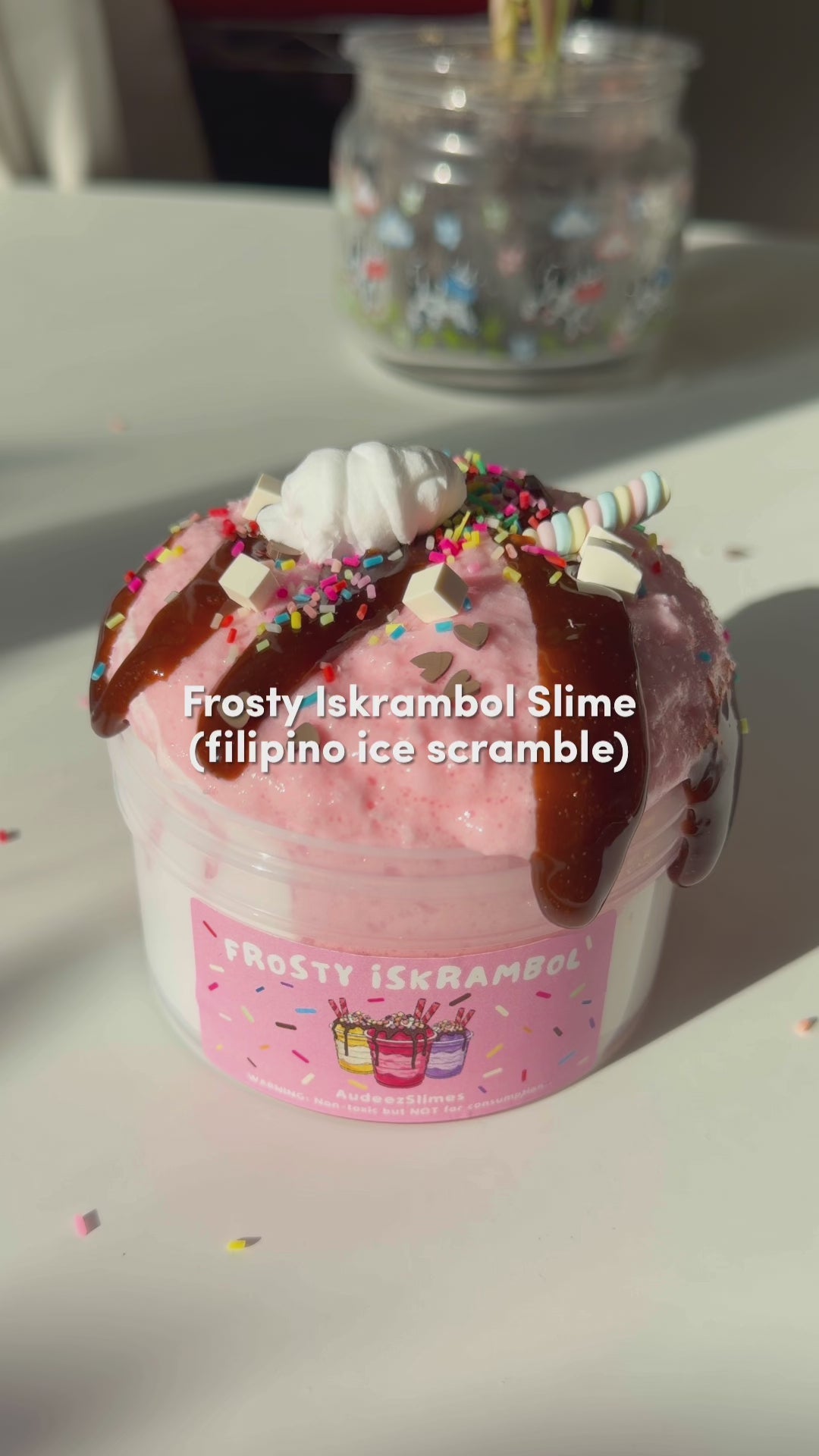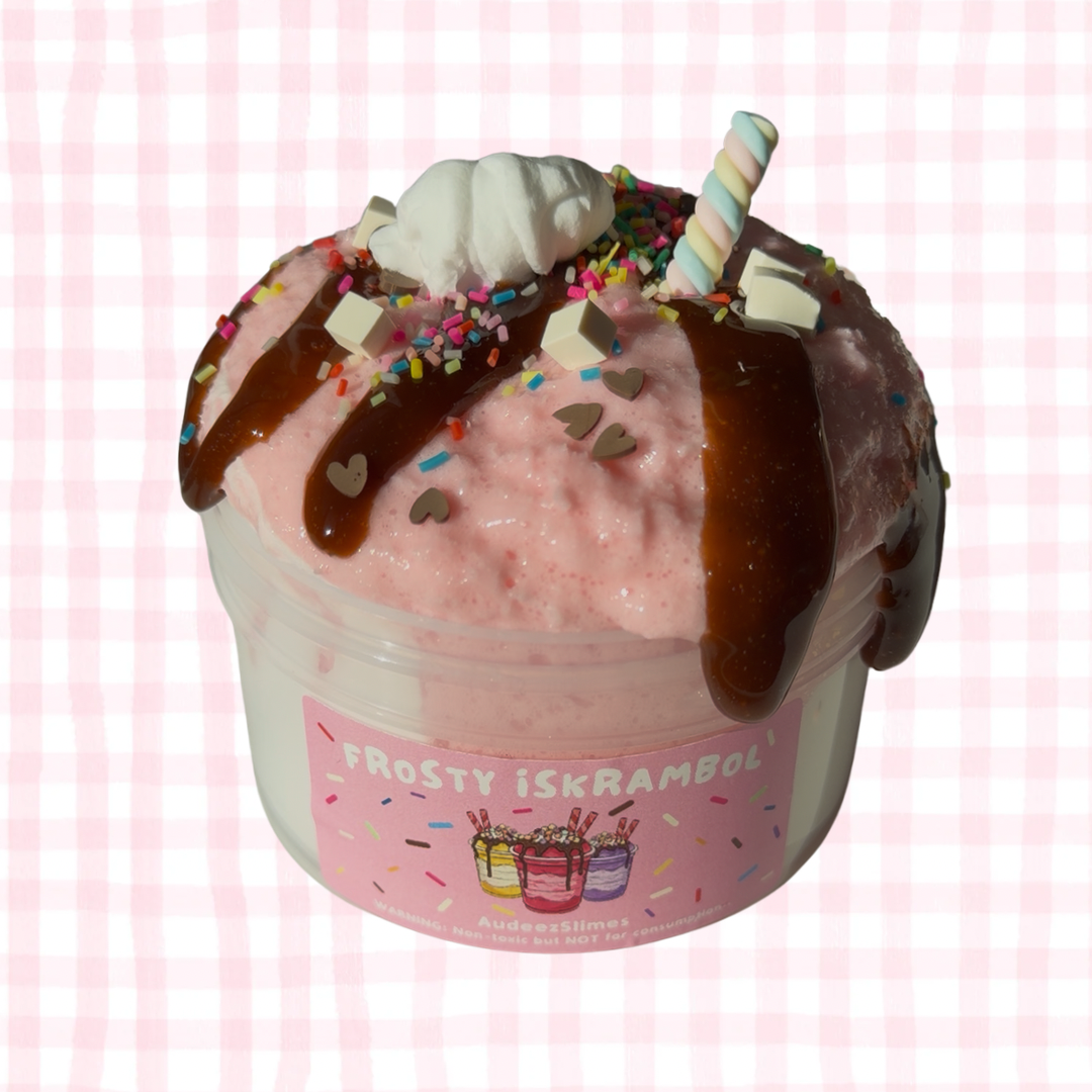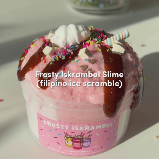 Get ready for a creamy and fun sensory experience with Frosty Iskrambol! This Filipino ice scramble inspired slime comes with a variety of dessert toppings and a clay "whipped cream" topper. Plus, you get to assemble it yourself with the included clear slime fudge. Get creative and have a blast!